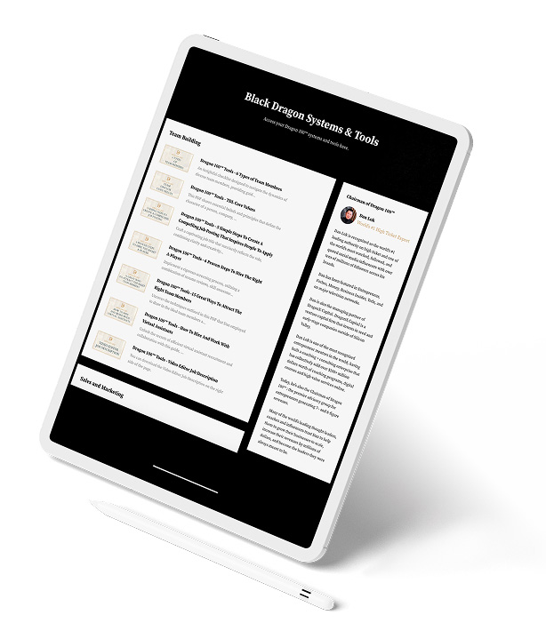 Since 2020, Dragon 100TM has helped entrepreneurs scale faster by eliminating chaos, removing bottlenecks, and installing systems that multiply enterprise value. What began as an exclusive mastermind has now evolved into a unique combination of strategic education and AI-powered execution. Members gain access to Dragon CRM™, Dragon AI Suite™, and AI Agents that hardwire growth and Certainty into their companies.